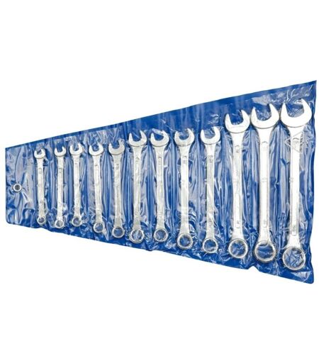 Set di chiavi combinate 6-22 mm 51620. Chiavi in acciaio al carbonio. Teste delle chiavi inclinate di 15 gradi. Contenuto della confezione Chiavi: 6, 7, 8, 9, 10, 11, 12, 13, 14, 17, 19, 22 mm ...