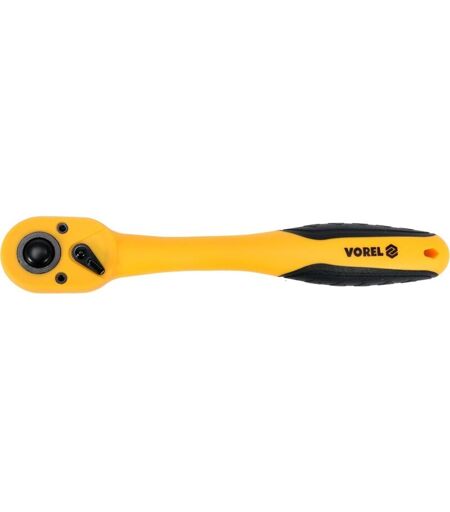 Il cricchetto VOREL è realizzato in acciaio CrV, che ne garantisce la durata anche in caso di utilizzo intensivo. L'intero corpo è rivestito in plastica gialla e l'impugnatura è dotata di inserti in gomma. Il cricchetto ha un attacco quadro da 1/2" e una lunghezza totale di 250 mm. ...