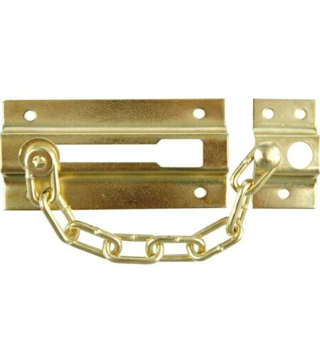 Catena per porta in ottone. Lunghezza catenaccio 85 mm, lunghezza piastra catena 24 mm, altezza catenaccio 41 mm, altezza piastra catena 41 mm, spessore catena 3 mm, peso 67 g Scopo/applicazione sicurezza aggiuntiva per porta ...