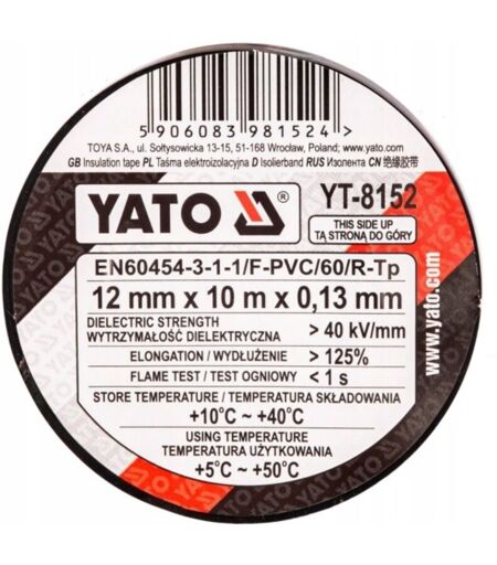 YATO - Nastro isolante elettrico 12mmx10mx0,13mm, nero YT-8152