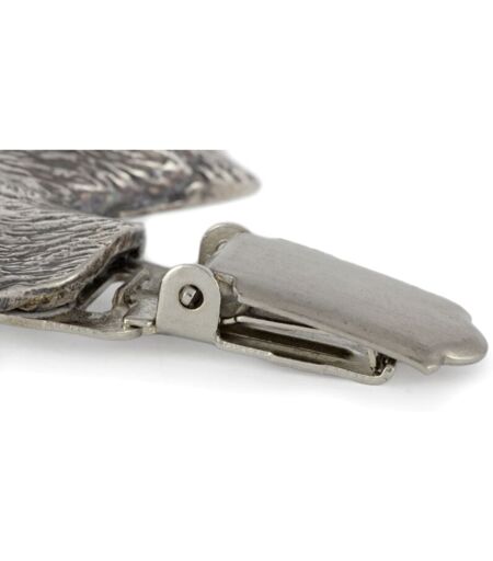 Tutti gli amanti degli accessori unici e degli animali domestici adoreranno sicuramente la nostra spilla placcata in argento con clip, che funge da supporto per il numero di partenza. Questa elegante spilla con l'immagine di un cane di razza è l'accessorio perfetto per le competizioni sportive o le esposizioni canine, consentendoti di mostrare in modo pratico ed elegante il tuo numero di partenza. Le nostre spille sono realizzate a mano con la massima attenzione ai dettagli. Il prodotto è realizzato in metallo fuso e ricoperto da uno strato d'argento, che gli conferisce una finitura bella ed elegante. La somiglianza realistica e dettagliata del cane rende la spilla sia funzionale che estetica. Dotata di una clip resistente e di una spilla di sicurezza, garantisce un fissaggio sicuro del numero, eliminando il rischio di sganciamento accidentale. Questa spilla argentata è un'eccellente scelta per i partecipanti a competizioni sportive, esposizioni canine e per chiunque apprezzi ...