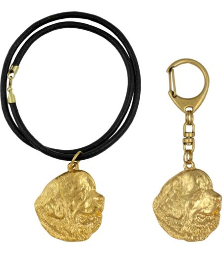 Terranova, Terranova, Cascata - portachiavi e collana con un cane in una scatola, prodotto placcato oro di alta qualità, marchio Art-Dog