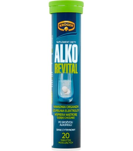 KRUGER Alko Revital - integratore alimentare al limone, rigenerazione dopo l'alcol, 20 compresse