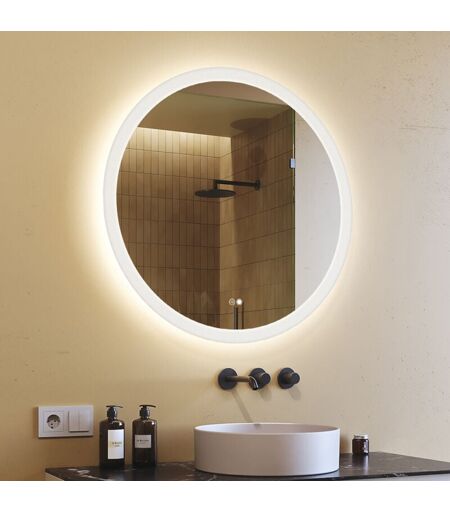 ARTFORMA - Rotondo Specchio da bagno led 80cm, Interruttore tattile mezzo, 3 Colori Luce, Antifog