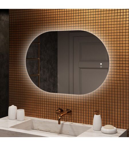 ARTFORMA - Specchio da bagno con illuminazione, 100x70, Interruttore touch, Antiappannamento, led Dual, Specchio Ovale