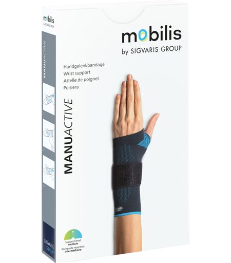 mobilis by SIGVARIS GROUP MANUACTIVE Polsiera Descrizione Dispositivo medico per il trattamento in caso di disturbi acuti e/o cronici del polso. Modalità d'uso Si raccomanda di lavare il prodotto prima del primo utilizzo. Manutenzione Lavare nell’apposito sacchetto portabiancheria. Avvertenze Applicare il prodotto esclusivamente su cute intatta. Non applicare il prodotto su ferite, cute lesa o morbosa affetta da malattia. In caso di dolore persistente o intensificato, reazione allergica, irritazione cutanea o altri effetti avversi legati all'uso del prodotto, interrompere l'uso e consultare un medico. L'uso a regola d'arte del prodotto può richiedere una consulenza da parte di personale sanitario specializzato. Selezionare correttamente la misura è importante affinché il prodotto possa svolgere correttamente la propria funzione. Prima di utilizzare il prodotto verificare sempre che non presenti segni di usura o invecchiamento. Una funzionalità ottimale del prodotto può essere garantita solo se questo è perfettamente integro. Non indossare il prodotto 24 ore al giorno, a meno che non sia prescritto da un medico. L'uso di unguenti, oli, creme e sostanze simili può avere un effetto negativo sulle proprietà del prodotto, diminuirne la durata e ridurne l'efficacia. Controindicato nei casi di: patologie, dolorabilità e lesioni della cute nei punti di applicazione del prodotto, soprattutto in caso di infezioni acute; ferite aperte e con essudato; cicatrici in rilievo con edema, arrossamento ed eccessivo riscaldamento; flusso linfatico alterato, edemi al di sotto del tessuto molle di genesi non chiara distalmente rispetto al prodotto applicato; condizioni post-traumatiche e post-operatorie che richiedono una immobilizzazione totale. Conservazione Il prodotto deve essere conservato nella rispettiva confezione originale, a temperatura ambiente, in luogo asciutto e al buio. Proteggere dal calore diretto (ad es. riscaldamento, irraggiamento solare) e dall'umidità. Formato 1 cavigliera, disponibile sia per polso destro che per polso sinistro Disponibile nelle taglie: XS, S, M, L, XL Cod. 307981 (destra, taglia XS) 307983 (destra, taglia S) 307985 (destra, taglia M) 307987 (destra, taglia L) 307989 (destra, taglia XL) 307980 (sinistra, taglia XS) 307982 (sinistra, taglia S) 307984 (sinistra, taglia M) 307986 (sinistra, taglia L) 307988 (sinistra, taglia XL) ...