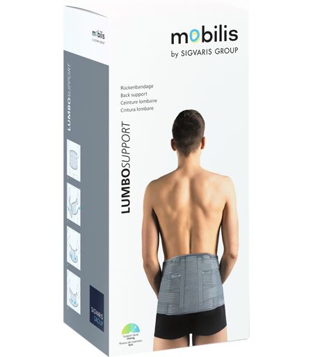 mobilis by SIGVARIS GROUP LUMBOSUPPORT Cintura lombare Descrizione Dispositivo medico per il trattamento in caso di disturbi acuti e/o cronici della zona lombare. Modalità d'uso Si raccomanda di lavare il prodotto prima del primo utilizzo. Manutenzione Lavare nell’apposito sacchetto portabiancheria. Prima del lavaggio: chiudere le chiusure a strappo, rimuovere gli stabilizzatori. Avvertenze Applicare il prodotto esclusivamente su cute intatta. Non applicare il prodotto su ferite, cute lesa o morbosa affetta da malattia. In caso di dolore persistente o intensificato, reazione allergica, irritazione cutanea o altri effetti avversi legati all'uso del prodotto, interrompere l'uso e consultare un medico. L'uso a regola d'arte del prodotto può richiedere una consulenza da parte di personale sanitario specializzato. Selezionare correttamente la misura è importante affinché il prodotto possa svolgere correttamente la propria funzione. Prima di utilizzare il prodotto verificare sempre che non presenti segni di usura o invecchiamento. Una funzionalità ottimale del prodotto può essere garantita solo se questo è perfettamente integro. Non indossare il prodotto 24 ore al giorno, a meno che non sia prescritto da un medico. L'uso di unguenti, oli, creme e sostanze simili può avere un effetto negativo sulle proprietà del prodotto, diminuirne la durata e ridurne l'efficacia. Controindicato nei casi di: patologie, dolorabilità e lesioni della cute nei punti di applicazione del prodotto, soprattutto in caso di infezioni acute; ferite aperte e con essudato; cicatrici in rilievo con edema, arrossamento ed eccessivo riscaldamento; flusso linfatico alterato, edemi al di sotto del tessuto molle di genesi non chiara distalmente rispetto al prodotto applicato. Conservazione Il prodotto deve essere conservato nella rispettiva confezione originale, a temperatura ambiente, in luogo asciutto e al buio. Proteggere dal calore diretto (ad es. riscaldamento, irraggiamento solare) e dall'umidità. Formato 1 cintura lombare Disponibile nelle taglie: S, M, L Cod. 308008 (taglia S) 308009 (taglia M) 308010 (taglia L) ...