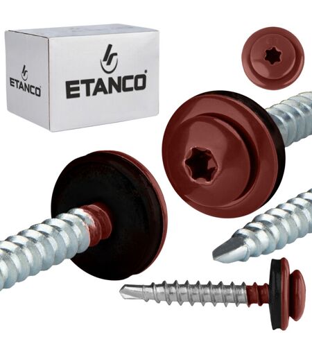 Selbstbohrende „Farmer Panhead“-Schrauben mit TORX-Aufnahme, ausgestattet mit einer integrierten Aluminiumscheibe und EPDM-Dichtung Konzipiert für die Befestigung von profilierten Metallblechen an Holzkonstruktionen. Die Schrauben können mithilfe einer speziellen Montagespitze montiert werden, die unter der Auktionsnummer 7315194959 erhältlich ist und die Arbeit erheblich erleichtert. Wichtigste Parameter Modell: GTF P Größe: 4,8 x 35 mm Bohrleistung in Stahl: bis 1 mm Maximal nutzbare Länge: 9 mm Aufnahme: TX20 Material: Stahl verzinkt Farbe: RAL 3009 Verpackung: 250 Stk. Originalprodukt eines renommierten Unternehmens Etanco® Vorteile 1. POWDER.COAT-Lackierung Zusätzlicher deutlicher Korrosionsschutz und perfekte Anpassung an die Lackfarbe in der RAL/NCS-Palette. UV-Stabilisatoren sorgen für Farbkonsistenz auch nach etwa einem Dutzend Jahren und die moderne Pulverbeschichtungstechnologie Powder.coat sorgt für Haltbarkeit der Beschichtung während der Installation und lange ...