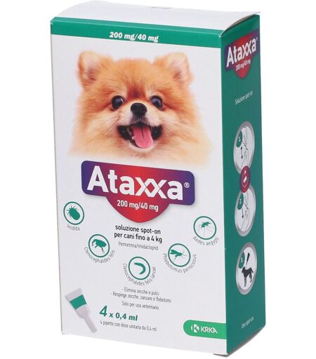 Krka Farmaceutici Milano Srl Ataxxa 200mg/40mg Spot-on per Cani fino a 4kg - 4 Pipette da 0,4ml