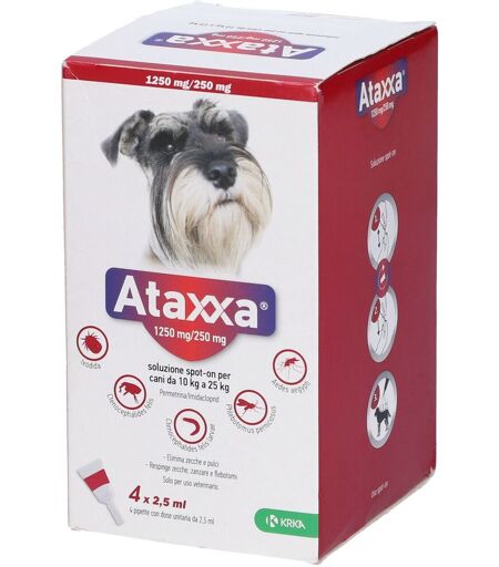 Krka Farmaceutici Milano Srl Ataxxa 1250mg/250mg Spot-on per Cani da 10-25kg - 4 Pipette da 2,5ml