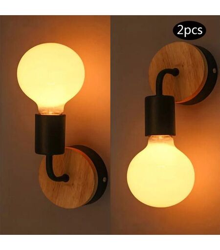 AXHUP 2X Luce a Muro Interno, Moderna Lampada da Parete in Legno e Metallo, Illuminazione per Camera da Letto Cucina Corridoio (Nero)
