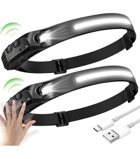 XVX Lampada frontale ricaricabile da 2 pezzi, lampada frontale a led ultra potente, ampia visuale a 260°/IPX4 impermeabile, torcia a mani libere, regalo