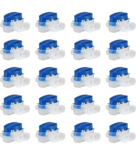 Materiale ABS di alta qualità. Veloce, sicuro, affidabile. Connettore del cavo riempito di gel: per una facile riparazione o estensione dei cavi. Questi 20 connettori 314 sono completamente impermeabili e garantiscono un collegamento solido. Montaggio semplice: Fino a 'con 3 fili collegabili. Applicazione: diametro del filo da 0,5 mm² a 1,5 mm². Utilizzo versatile: esterno, giardino, robot rasaerba, recinzione invisibile per cani, installazione sotterranea, adatto anche per installazione sotterranea e molti altri.< br> Caratteristiche : - Colore: blu-bianco - Connettore per cavo a 2 o 3 fili - Adatto a tutta la gamma di cavi con sezione da 0,5mm² a 1,5mm² - Dimensioni: Profondità = 24 mm, Larghezza = 23 mm, Altezza = 17 mm (per connessione) Montaggio semplice: Basta avvicinare il cavo da collegare al foro di collegamento e comprimerlo. Con l'aiuto di una leggera pressione, ad esempio utilizzando una pinza, il contatto a U pressurizzato penetra nell'isolamento e crea così un ...