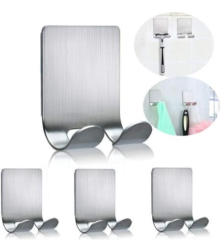 SOEKAVIA Gancio porta rasoio adesivo doppio in metallo, porta rasoio in acciaio inox impermeabile, portasciugamani da bagno per doccia, supporta fino a 1 kg