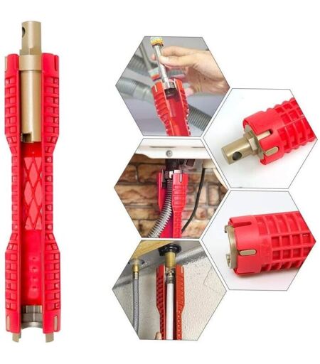 SOEKAVIA Chiave per tubi multiuso, strumento di riparazione per rubinetti e lavandini, strumento idraulico, chiave a bussola, chiave per tubi da cucina (rosso)