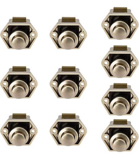 SOEKAVIA - 10 pezzi Mini pulsante per serratura a cassetto e porta dell'armadietto, roulotte, camper, pomello di bloccaggio in nichel per barca