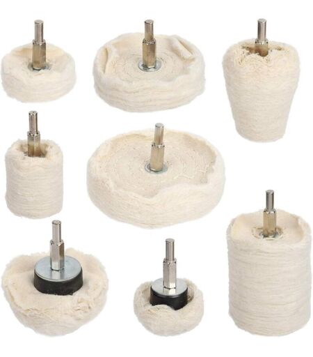 SOEKAVIA Disco lucidante per trapano, 8 tamponi lucidanti in cotone per metallo (alluminio/acciaio inossidabile/cromo/lega/ottone), legno, plastica, vetro,