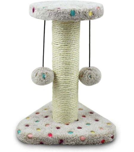 Naturale ed ecologico: Questo albero per gatti è realizzato con materiali sicuri ed ecocompatibili. La superficie è ricoperta di materiali naturali innocui. Fibre di sisal e flanella di qualità, offrono al tuo gatto uno spazio confortevole. Parco divertimenti per gatti: Un luogo ideale per i tuoi gatti per rilassarsi o soddisfare il loro bisogno di graffiare, tenendo gli artigli lontani dai tuoi mobili. Facile da montare: Design portatile e compatto, molto facile da montare e smontare. Intrattenimento senza fine: Tiragraffi resistente con palline sospese interattive per un divertimento extra. Questo tiragraffi è perfetto per dormire e giocare. Design unico: Robusta base triangolare, tessuto di peluche di qualità, motivi a pois colorati, si abbina perfettamente all'arredamento della tua casa. ...