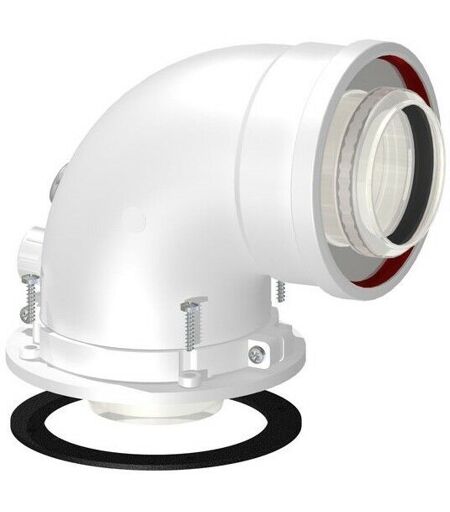 Curva di partenza coassiale a 90° per caldaie a condensazione provvista di ispezione prelievo fumi in polipropilene diametro 60/100 mm adattabile per caldaie: ferroli- Biasi - Radiant - Joannes - Ici - Savio - Arca - Unical - Euroterm - Lamborghini - Sime - Fondital - Stargas . Mcn ...