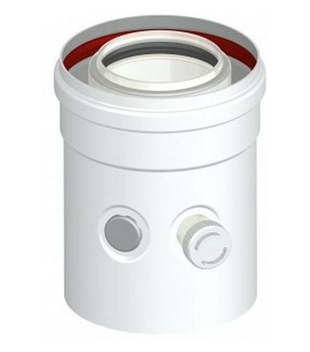 Partenza verticale coassiale per caldaie a condensazione provvista di ispezione per il prelievo delle analisi dei fumi diametro 60/100 mm adattabile per caldaie Baxi - argo - Viessmann - Roca prodotto in polipropilene ...