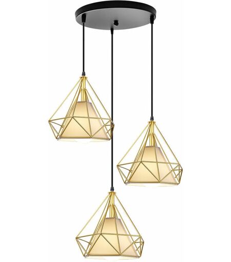 AXHUP Lampada a Sospensione Industriale, 3 Luci Plafoniera con Gabbia di Diamante 25cm, Lampada E27 per Soggiorno Sala da Pranzo (Nero e Oro)