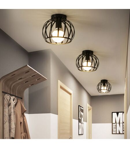 AXHUP 3X Plafoniera, Lampada da Soffitto con Ø19cm Gabbia Rotonda, in Metallo con Supporto E27 per Soggiorno Cucina Camera da Letto Loft (Nero)