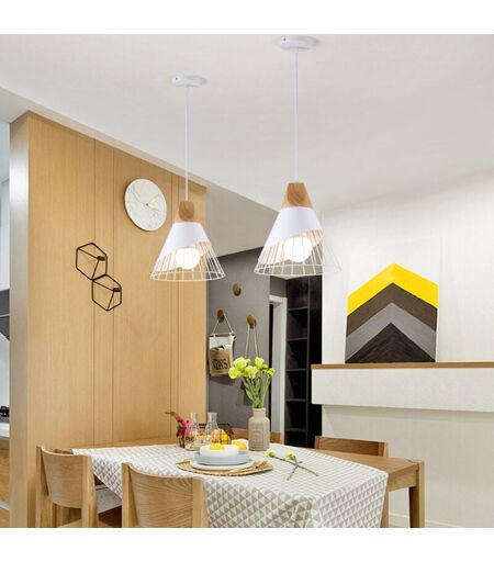 AXHUP 2X Lampadario Industriale Creativo Lampada a Sospensione Ø25cm a Forma di Badminton in Metallo e Legno Plafoniera E27 per Camera da Letto Soggiorno