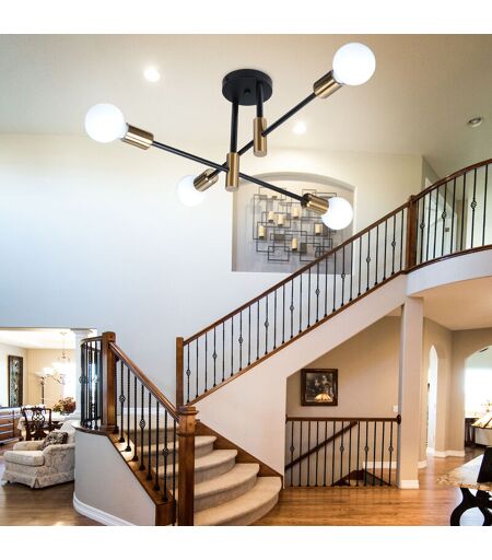 Lampada da soffitto retrò Luminiare Lampadario industriale vintage a 4 punti Specifiche del lampadario Sputnik: Nome del prodotto: plafoniera moderna. Materiale: superficie galvanica in metallo ferro battuto Colore: champagne + nero Presa: 4 prese E27 Prese: presa E27 Tipi di lampadine applicabili: lampadine a risparmio energetico, lampadine a incandescenza e lampadine a LED. Tensione: 110-240 V Potenza massima compatibile: 40 Watt Promemoria amichevole: deve essere installato da un elettricista qualificato. Per pulire o sostituire la lampada durante l'installazione, è necessario spegnere l'alimentazione. Alta qualità: Il lampadario Sputnik è realizzato in metallo di alta qualità, resistente e durevole. A differenza di altri lampadari, il connettore del lampadario adotta un processo di galvanica avanzato e il prodotto ha un senso avanzato. Design bicolore nero e oro, stile moderno. Braccia regolabili: I bracci dei lampadari moderni possono essere ruotati di 180 gradi e si possono ...