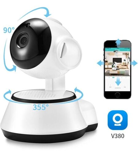 Telecamera panoramica V380Pro, telecamera IP di sicurezza domestica, telecamera intelligente wireless, registrazione audio WiFi, baby monitor per interni Controllo PTZ: rotazione orizzontale di 355 gradi, rotazione verticale di 100 gradi Archiviazione locale: supporta scheda TF da 64 GB, supporta registrazione video 24 ore su 24 o allarme Controllo video: supportato Rilevamento del movimento: supportato Azione allarme: campanello di allarme / push client mobile Effetto visione notturna con luce a infrarossi: tramite interruttore fotosensibile con sensore di resistenza, visione notturna a LED da 10 metri (IR-CUT automatico) Rilevamento del movimento e avviso e-mail Grazie alla funzione di rilevamento del movimento, la telecamera può rilevare tutti i movimenti che si sono verificati in casa e registrarli Tutti i movimenti possono essere rilevati e registrati tramite la funzione di rilevamento del movimento e un'e-mail di allarme verrà inviata tempestivamente per darti abbastanza tempo ...