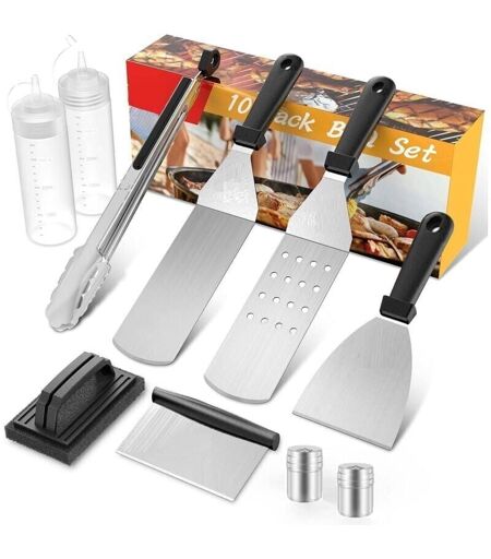 SNQ Utensili per piastra 10 pezzi in acciaio inox, spatola per barbecue, accessorio per piastra, kit per piastra per Teppanyaki,