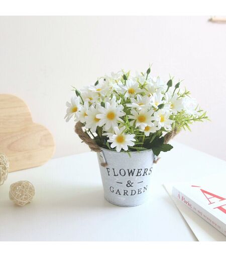 SNQ Fiori artificiali per interni (1 confezione), con vaso in metallo, decorazioni per matrimoni, esterni, ufficio, tavolo, giardino, regalo per la nuova