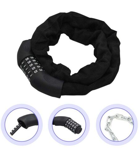 ALOVEZ Lucchetto per bicicletta ALOVZE, lucchetto con codice, catena antifurto per moto a 5 cifre, acciaio, 120 cm, nero