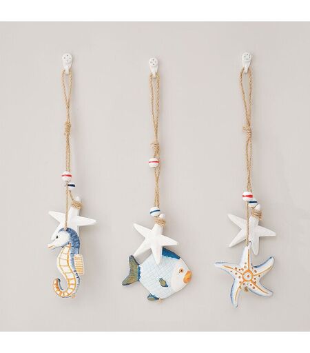 KZQ 3X Decorazione sospesa in legno con stelle marine, pesci - Conchiglie decorative sospese - Decorazione sospesa marittima per la casa