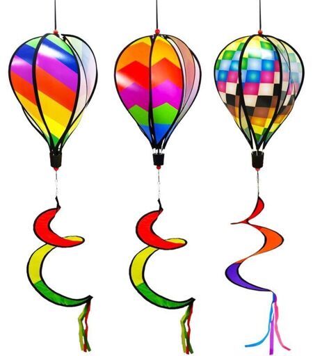 KZQ Pezzi 110 cm Arcobaleno Mongolfiera Giardino Girandole Mulino a vento Strisce Arcobaleno Manicotti a vento Spinner Glitter Decorazione da giardino