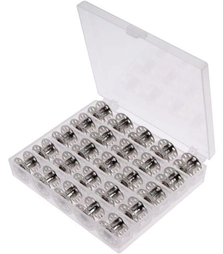 Bobine per cucire in metallo, adatte alla maggior parte delle macchine da cucire domestiche standard, come Brother, Singer, Bernina, Elna, Babylock, Kenmore, Juki, ecc. Diametro bobina: 21 mm, altezza: 12 mm, diametro foro centrale: 6 mm. Se il diametro originale del foro della bobina della tua macchina è di 6 mm, il nostro prodotto è compatibile. Set di 25 bobine per macchina da cucire con scatola portaoggetti, filo di cotone non incluso. Materiale: metallo duro resistente. Belle bobine in metallo standard e lisce. Dimensioni della scatola portaoggetti: 12 x 10 x 2,5 cm. Peso totale: 135 g. ...