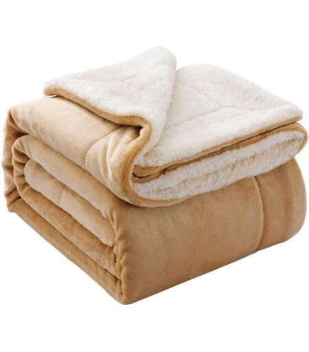 KZQ Manta polar reversibile de microfibra de franela sherpa ultrasuave y ligera para cama o divano (127 x 152 cm, beige) -