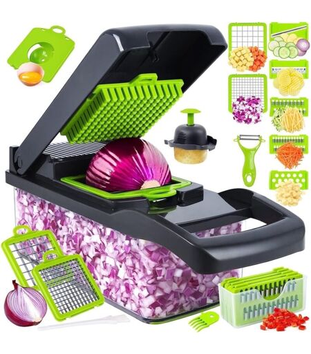 VTIZIKL Tritatutto professionale per verdure 14 in 1 - Acciaio inossidabile, senza BPA Set affettatrice e taglierina mandolina con cestello di scarico,