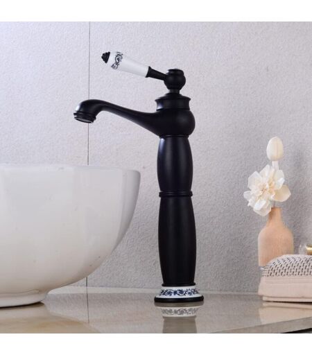 VTIZIKL Rubinetto monocomando - 32 cm - Stile retrò - Ottone - Rubinetto per bagno - Rubinetto per lavabo - Acqua calda e fredda - Nero