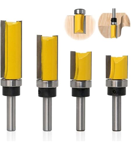 SNQ Lot de 4 Fraise à Copier Bois Tige de 8 mm, Fraises à Rainurer pour Défonceuse, Fraise Droite de Copiage, Outil de Coupe Professionnel pour Routeur
