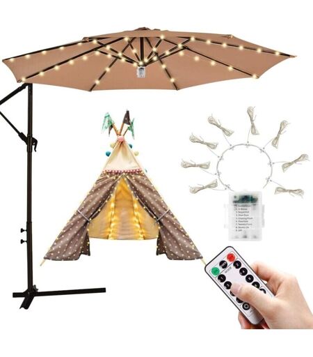 SNQ Guirlande lumineuse pour parasol de terrasse, 8 modes de luminosité, 104 led, blanc chaud, étanche, variable, fonctionne sur piles, utilisation