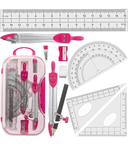 KZQ - Set di geometria : compasso, righello e trasportatore, per studenti, rosa