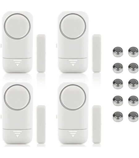 LONGZIMING Set di 4 allarmi magnetici per finestre e porte–Allarme casa–Sistema antifurto wireless–Batterie incluse – Protezione antifurto, dispositivo