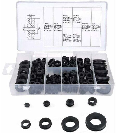 Matriaux de haute qualit: le joint passe fil caoutchouc est en caoutchouc de qualit suprieure qui est souple et durable, dote d'une excellente isolation et pouvant protger efficacement le fil lectrique. Protection complte: placez passe-fils en caoutchouc dans le panneau mtallique pour empcher le contact entre mtal et protger le cblage. En outre, la passe fils caoutchouc protge le cble des substances chimiques. Applications varie: Oeillet en caoutchouc peut tre utilis dans les voitures, bateaux, cylindres, valves, conduites d'eau, etc. C'est un outil idal pour les rparateurs, les dmnageurs et les dcorateurs. En outre, l'oeillet caoutchouc assortiment peut efficacement cbler et maintenir lesthtique. Joint passe cloison en 8 tailles: 180 pcs au total, 5/8 "(5pcs), 7/8" (5pcs), 1 "(5pcs), 1/2" (20pcs); 7/16 "(25pcs) 1 / 4 "(40pcs), 5/16" (40pcs), 3/8 "(40pcs), pour rpondre vos diffrents besoins. Facile utiliser: avec la conception de type O et le trou de morsure facile cliquer, appuyez ...