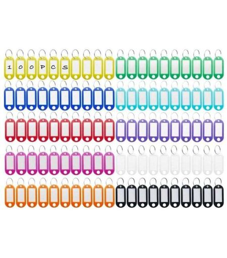 ALOVEZ SHINING HOUSE 100 pièces porte-clés, porte-clés en plastique, porte-clés colorés inscriptibles en 10 couleurs, étiquettes d'identification avec