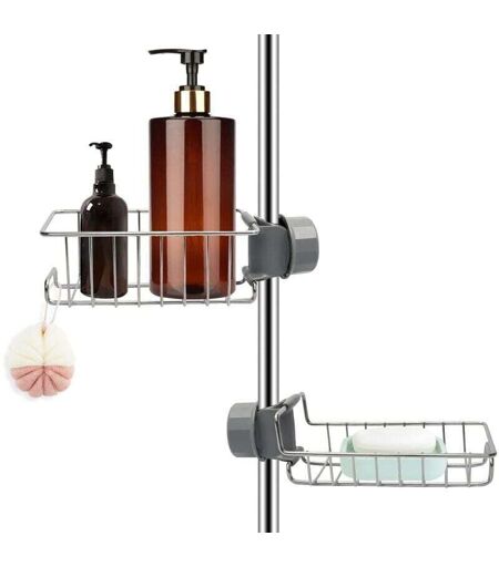 【Étagère de salle de bain sans perçage】: Pas de perçage ni de collage, il suffit de la visser sur la tige d'affichage et elle offre une tenue et une adhérence solides, aucun dommage au mur et aucun outil supplémentaire requis. 【Facile à assembler】: Livré avec deux anneaux en forme de C et s'adapte à la plupart des barres de salle de bain rondes d'un diamètre de 18 à 27 mm. 【Idéal pour les salles de bain, les cuisines et plus encore】: Venez avec un support profond et un support peu profond. Ne vous inquiétez pas de la stabilité si vous y mettez du shampoing ou du gel douche de grande taille. 【Acier antirouille et durable】: Fabriqué en acier inoxydable SUS304 de haute qualité, imperméable, antirouille et durable pour assurer une longue durée de vie. ...