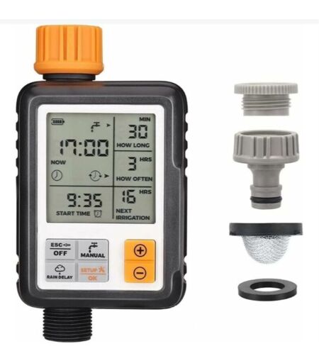 ALOVEZ Temporizador de riego automático, temporizador de riego por goteo, resistente al agua y para uso en exteriores, múltiples modos, pantalla LCD de 3",