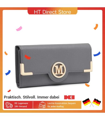 Miss Lulu Portafoglio lungo da donna con cerniera custodia per telefono con porta chiavi a ventaglio in pelle PU