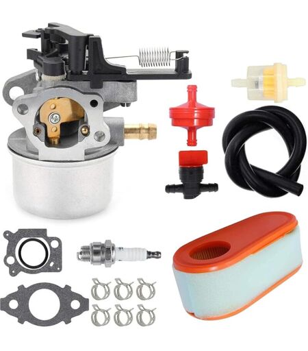 Sostituzione del carburatore n. 591137 590948. Sostituzione del filtro dell'aria n. 795066 796254 5419 Sostituzione del carburatore per Briggs & Stratton 11P02 111P05 111P07 114P02 114P05 114P07 11P902 11P905 11P907 121Q02 121Q06 121Q07 121Q12 121Q42 121Q72 121S02 121S05 121S07 121S12 121S17 121S72 121S75 121S77 124Q02 124Q07 124S77 124S07 124S05 124S02 124S75 124S72 12Q907 12Q902 124S02 Motori 124S05 124S07 124S72 12S975 12S972 12S907 12S905 12S902. Sostituzione del carburatore per Husqvarna 775EX HU775H, per tosaerba John Deere JS35 JS46 JM46 JS48, per idropulitrice tosaerba Troy Built TB360 2800, per idropulitrice Craftsman, per tosaerba Toro Time Master, per tosaerba Toro Time Saver da 30 pollici. Sostituisce BS 11 e 12 cu. in. alcuni motori OHV ad albero verticale. Contenuto della confezione: 1 carburatore, 1 filtro dell'aria, 2 guarnizioni, 1 O-ring, 1 tubo del carburante, 2 filtri del carburante, 1 valvola di intercettazione, 6 morsetti, 1 candela. ...