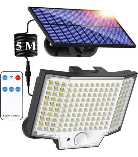 Lampada solare da esterno per giardino 2000lm IP65 Sensore 270° 3 modalità di illuminazione Proiettore Faretto [Classe energetica E]