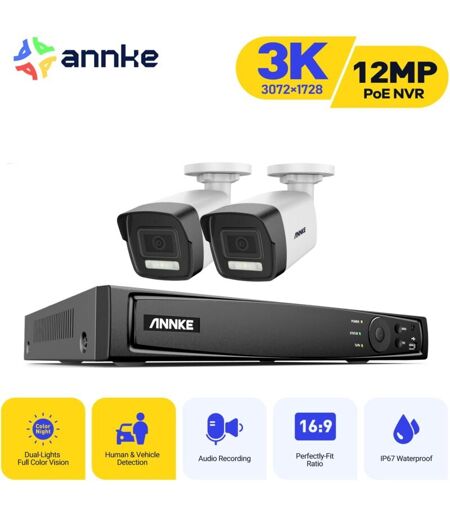 ANNKE Poe Kit di Videosorveglianza Esterni nvr 12MP con 2 Telecamere Accesso Remoto Allarme E-mail Registrazione 24/7 Sistema Kit Telecamera di